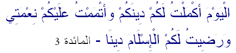 This day I have perfected your religion for you, completed my favour upon you, and have chosen for you Islam as your religion.. [5:3]