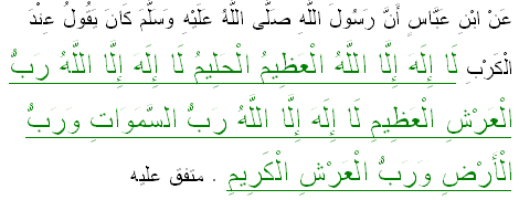 "There is no god except Allaah, the All-Mighty, the Forbearing; there is no god except Allaah, the Lord of the Mighty Throne; there is no god except Allaah, Lord of the heavens, Lord of the earth and Lord of the noble Throne.”