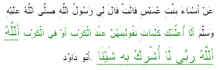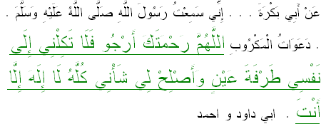 Abi-Bakrah narrated . . . The Prophet (Peace & Blessings of Allaah be upon Him) said: "The prayer for one in distress is: